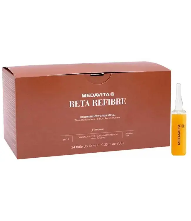 MEDAVITA Beta Refibre Reconstructive Hair Serum is een intensieve herstellende ampullenbehandeling speciaal ontwikkeld voor beschadigd, chemisch behandeld en verzwakt haar.