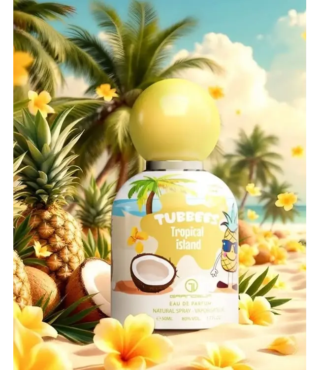 Laat kinderen genieten van een zonnige en fruitige geur met Grandeur Tubbees Kinderparfum Tropical Island. Deze vrolijke parfum is geïnspireerd op exotische vruchten en zomerse eilandtonen – perfect voor kleine avonturiers die houden van levendige en speelse geuren.