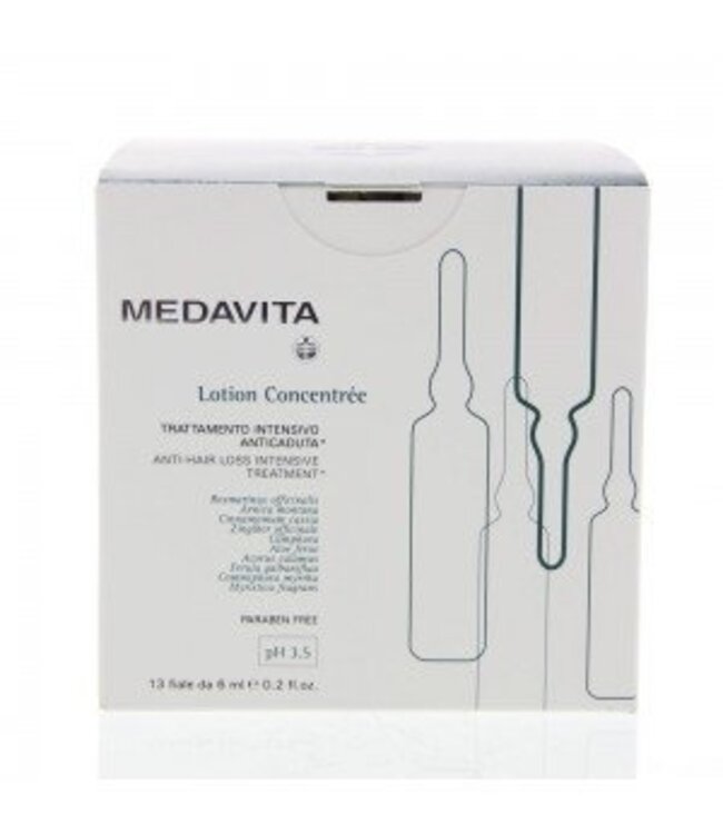 De Medavita Trattamento Intensivo Anticaduta pH 3.5 is een geavanceerde intensieve behandeling ontworpen om haaruitval te verminderen en de haargroei te stimuleren. Met een geoptimaliseerde pH van 3,5 helpt dit product de natuurlijke balans van de hoofdhuid te herstellen en het haar van de wortel tot de punt te versterken.